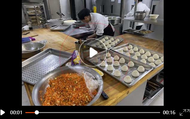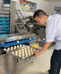 工作流程:供餡料斗->供面傳輸帶->包制->切斷成型->傳送帶->醒發->蒸制。