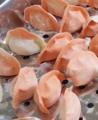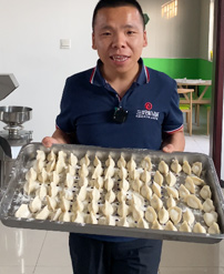 按照面點工藝的要求,減少與面團的摩擦,確保餃子口感柔軟、彈韌性佳,外形美觀,立體感好。